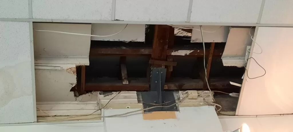 It turned out the original design and construction from the 1930s was pushing each truss to its structural limit, and with the water leaks over the years, the timber had started to rot and drop. This only made the leaks worse as the gutters dropped too!